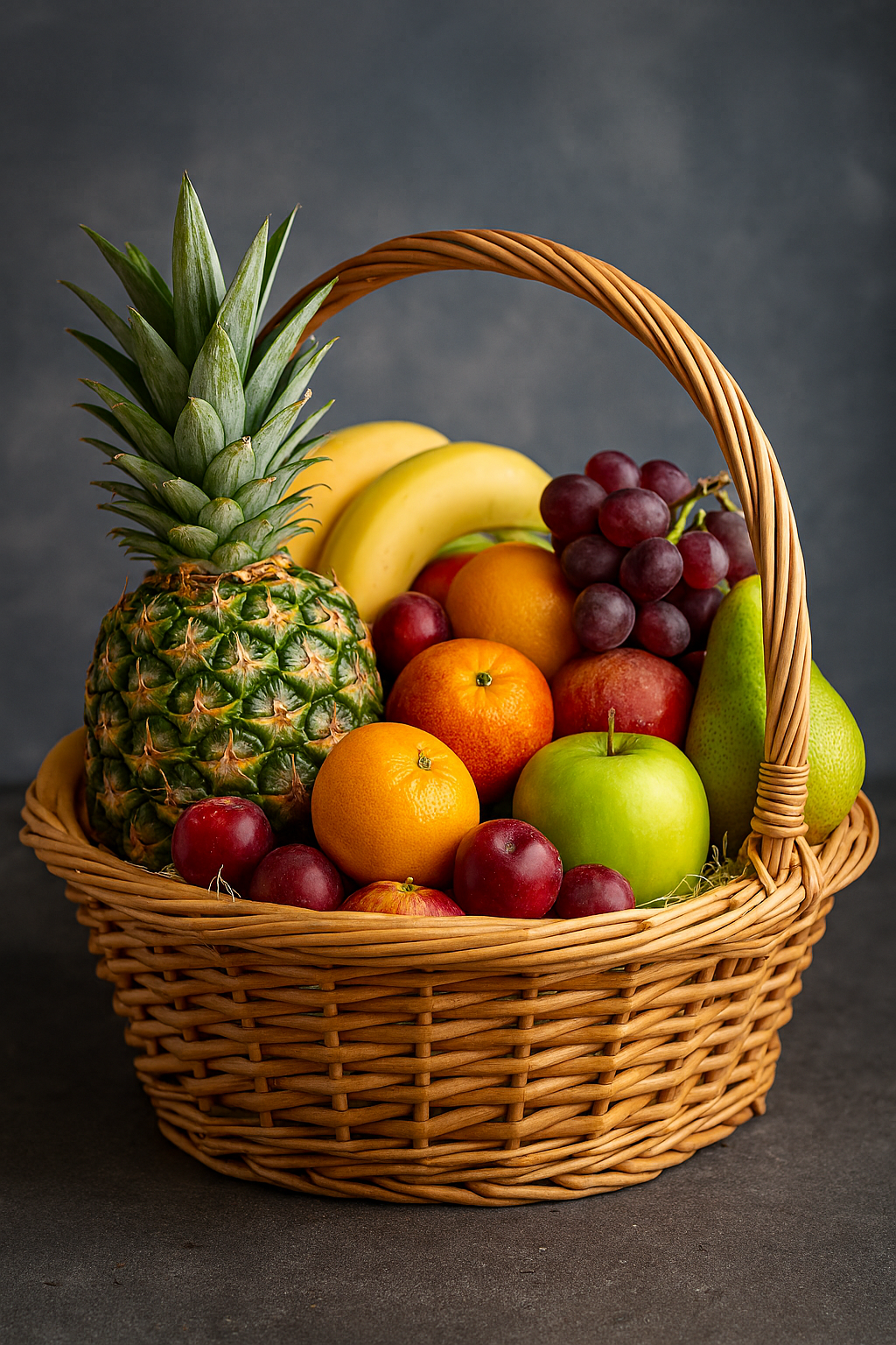 Bright, fresh, and beautifully arranged — our Fruit Hamper is the perfect gift for any occasion. Packed with a delightful selection of seasonal fruits, this hamper offers a vibrant mix of colours, flavours, and natural goodness in every bite.